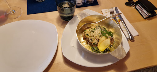 Hi, also eigentlich würde ich 5 Sterne vergeben, aber eine Kleinigkeit hat mich gestört, ich hatte online reserviert auf 20:30 - 20:45 Uhr. Das wurde auch bestätigt. Habe dann später ne Mail bekommen, dass die Küche nur bis 20:30 Uhr offen hat und wir doch bitte um 20 Uhr oder eher da sein sollen. Da ich meine Mails nicht ständig checke, habe ich es erst später gelesen ( Hatte ja die Bestätigung). Da meine Tochter aber noch ausreiten war, konnten wir leider erst 20:15 Uhr da sein. Daher hatten wir uns etwas unter Druck gesetzt gefühlt und es war alles etwas stressig. Ein kurzes lassen Sie sich ruhig Zeit hätte geholfen. Aber soviel zum Vorfeld. Das essen war wirklich sehr gut und auch das Ambiente sehr schön. Wir wurden von zwei unterschiedlichen Kellnerinnen bedient die jüngere von beiden strahlte Ruhe aus und war sehr freundlich, die ältere war auch freundlich aber etwas reserviert. Sie hat auch draußen schon eingeräumt und die Sachen "provokativ" auf den Nachbartisch gestellt ( ob absichtlich oder nicht weiß ich nicht) was uns nochmal das Gefühl gegeben hat so esst auf und los ich will Feierabend machen (ca. 20:45 Uhr). Das hat leider das Essen etwas kaputt gemacht, weil wenn ich ca. 80 Euro (2 Personen) für Essen bezahle möchte ich mich wohl fühlen und genießen, dass war leider nicht der Fall. Anhand meiner Bewertung kann man aber sehen, dass es echt gut war, nur sollte man früh...