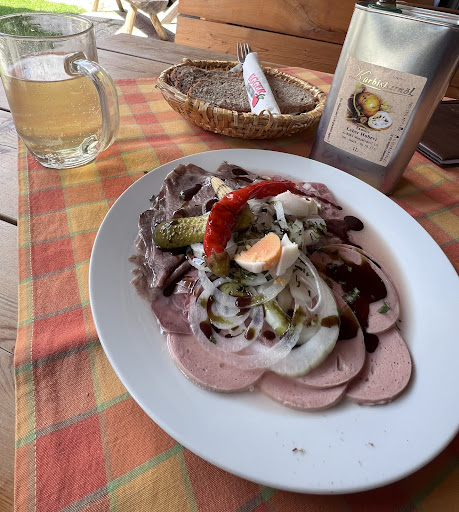 Das Essen ist ein Traum: alles aus eigener Produktion – von herrlichem Speck 🥓 über köstliche Sulze, frisch gekochte oder luftgetrocknete Würstel bis hin zu saftigen Rippelen. Genau so stellt man sich eine echte, authentische Buschenschenke vor. 👍