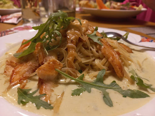 Read moreVor wenigen Tagen besuchten wir zu Zweit dieses Restaurant, unter anderem aufgrund der guten Bewertungen. Welche ich bis heute nicht nachvollziehen kann. Wir hatten zwar Glück, dass wir trotz nicht reserviertem Tisch einen Platz bekamen, doch wurden wir mit unseren Hunden fast mitten in das Lokal gesetzt, sodass sie teilweise mitten im Gang lagen. Getränke konnten wir recht schnell bestellen, welche jedoch vergessen wurden und uns eine andere Kellnerin freundlich nachgebracht hatte. Nach 15 min konnten wir endlich unser Essen bestellen, auf welches wir knapp über eine Stunde warteten. Wenn wir nicht schon unser Getränk bekommen hätten wären wir aufgestanden und gegangen. Tische die nach uns kamen, bekamen vor uns ihr Essen. Andere mussten 10 Minuten warten um zahlen zu können. Bei nicht mehr als 15 besetzten Tischen kaum nachzuvollziehen. Als das Essen langsam nacheinander kam war der Salat bitter und die Nudel viel zu fettig. Für diesen Preis und diese langen Wartezeiten hätten wir uns wesentlich mehr erwartet. Als wir zahlen wollten und anscheinend zu wenig Trinkgeld gaben, wünschte uns die Kellnerin nur augenverdrehend ein schönes Wochenende. Nie wieder. Das war...