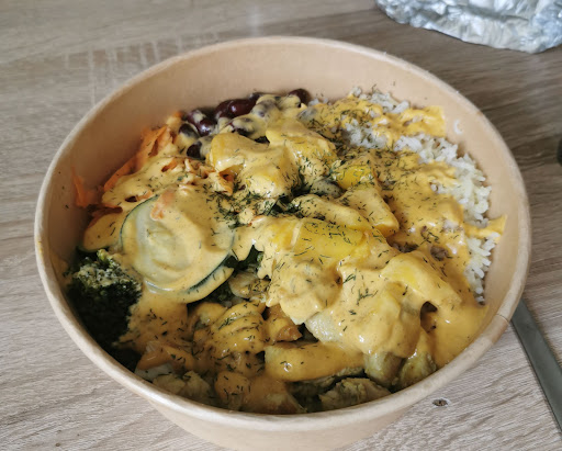 We took four bowls, one wrap, and two cocktails. Everything was great.