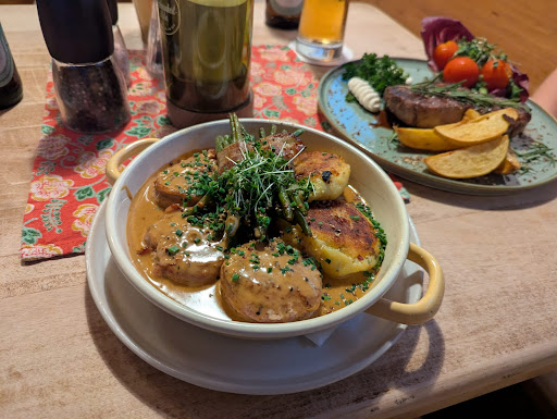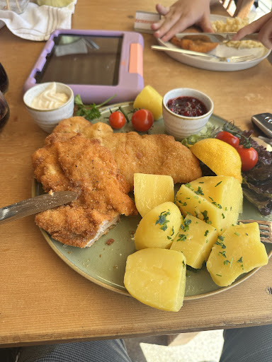 Read moreDas Essen war gut. Der Service war es leider nicht. Bei der Ankunft wurden wir zuerst ignoriert und im Eingangsbereich blöd stehen gelassen auf unsere Fragen nach unserem Tisch wurden wir immer darauf hingewiesen, dass die Kollegin gleich kommt. Offenbar hat ihr niemand gesagt, dass wir auf unseren Tisch warten. Schließlich wurden hinter uns wartende Gäste zu ihrem Tisch gebracht bis wir endlich auch begrüßt und zum reservierten Tisch gebracht wurden. Beim Service am Tisch ging es chaotisch weiter. Entweder ließ sich lang niemand blicken oder es wollten mehrere Kellnerinnen innerhalb weniger Minuten die Bestellung aufnehmen. Für unseren Dreijähigen hatten wir Pommes bestellt, da die aus waren hat die Kellnerin anstelle "Bauern Fritten" gebracht. Diese sind scharf gewürzt (ich tippe auf Chili) Das fand ich super ignorant. Wer im Service arbeitet sollte die Speisen kennen und soviel Hausverstand, dass junge Kinder Scharfes nicht mögen, setzte ich eigentlich auch voraus. Zum Abschluss hatte die Kellnerin noch Probleme mit dem Belegdrucker und hat dann noch vor dem Kind das...