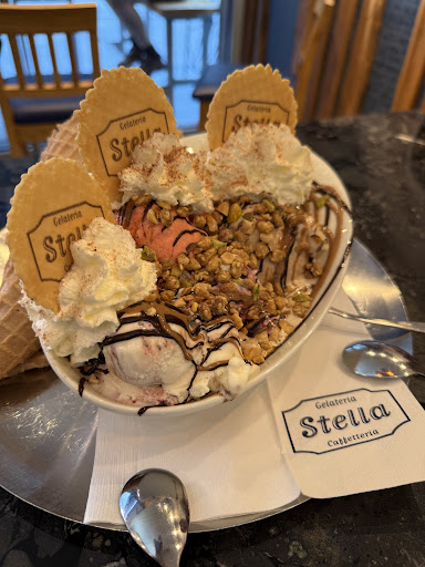 What an experience! And Nico made it. Due to religious reasons we needed to be total vegetarian. But this didn’t stop us from wanting gelato after our scharfberg hikes. So we checked out Stella and Nico helped us with the what was vegetarian and then came up with all the accoutrements to make this a great scrumptious taste and looking sundae. Lots of kudos in the presentation. And we can health recommend the schoko yogurt erdbeer and the haselnuss flavors. But if Nico makes them, they should all taste...