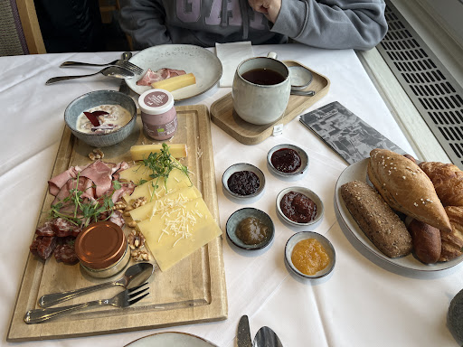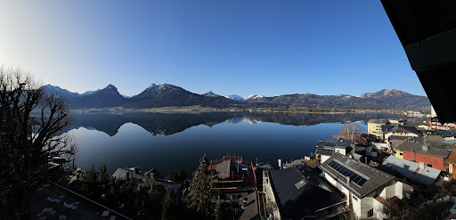 Read moreAs the photo of the hotel indicates, the main feature is the wonderful view; get a room with a view if you can afford it (the further to the right looking in the direction of the lake, the better).||||At arrival, you can expect a very friendly reception (that's what experienced during my complete stay); the parking is right in front (if you can get a slot; book ahead). If nothing is free, you can get a free ticket for the public parking a few steps further - just ask at reception.||||The rooms are generous in size, with a sofa and a plush chair, plus a desk with a chair; there are plenty of surfaces and wardrobes to store your belongings. They are equipped with a safe, a minibar, shoe helper, and bathroom slippers are provided. ||||The Wifi worked well.||||The bath is quite small in comparison (toilet and bath are separate rooms, which does not help...) and holds both a bathtub and a shower; I would not consider it apt for two people at the same time. Note that the shower shower has low pressure and varying temperatures - a small dent in an almost perfect performance of the hotel.||||The bed is decent (although not quite up to the standard of the rest of the room), with two types of pillows offered. It is very quiet at night (once the restaurant closes, that is, and except the church bell tower), until the nearby church bell calls for prayer at 7 am.||||Curtains to keep the light out are completely opaque, but unfortunately do not overlap and are slightly too narrow, so they do not keep the light out completely (but still keep the room reasonably dark).||||At breakfast you can expect a decent choice; coffee and eggs are prepared to your liking - you just have to ask.||||If you get bored (it does rain every now and then...), there are lots of (free) books to read while you are there.||||Probably not always possible depending on busyness), but in my case a free late check-out was arranged - much appreciated (more time for the beautiful view!).||||If I can afford it and the weather plays along, I'll be happy...