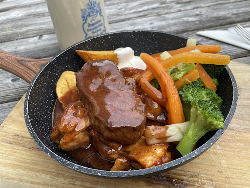 Wir, zu zweit mit Hund, aus Ostwestfalen, wollten einmal in unserem Urlaub so ein richtiges Alm-Abendessenerlebnis. Das war die beste Entscheidung hier einzukehren. Total unscheinbar, weitab, sind wir wegen Googlemaps per Zufall hier drauf gestoßen. Es war unser letzter Urlaubsabend und es war wirklich toll! Die Bedienung spitze. Ich glaub, es ist Chefin selbst!? Kurzum, super lustig, die Art muss man mögen. Aber genau das will man doch im Urlaub. Mal was anderes. Die Gaststätte schön urig. Die Karte ist der Knaller. Es gibt keine. Drei Gerichte, gabs zur Auswahl an dem Tag. Und Getränke. Standard. Qualität, statt Quantität!! Wir waren wegen den Haxen dort. Mein Freund wollte unbedingt einmal eine richtig gute Haxe essen. Also die Portion Haxe für zwei. Ein Muss! Ich würde sagen das beste Abendessen unseres Urlaubs. Wir würden jederzeit wiederkommen! Preis/Leistung...