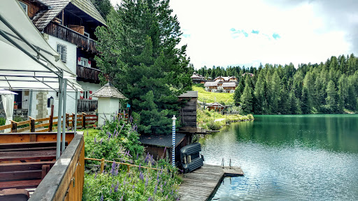 Ristorante/locanda sul pittoresco lago di Turracher Hohe, che gode di una vista spettacolare, memorabile! Qua sotto alla mia recensione pubblico le 4 foto della vista, da sinistra a destra: foto che ho scattato in agosto 2020, quando siamo stati qua sia a mangiare sia a dormire. È meravigliosa anche la location: si sentono solo i rumori fatti dal cameriere e dagli altri clienti, infatti questo posto è IMMERSO nella natura, sta molto lontano dalle strade carrabili ma comunque è raggiungibile con l'automobile (però la strada di accesso non è asfaltata e i parcheggi sono solo per tre automobili). Anche le altre case o gli hotel sono abbastanza lontani, invece questa locanda è molto vicina a una seggiovia che è collegata al bellissimo comprensorio sciistico che sta tutto attorno al paese turistico. Quindi consiglio a tutti di venire qua sia per mangiare (abbiamo pranzato qua 4 volte: siamo rimasti sempre soddisfatti) sia per dormire (abbiamo preso in affitto un loro grazioso appartamento con TUTTI i comfort: siamo stati contentissimi della nostra scelta!) Mandiamo un affettuoso saluto da Trieste all'anziano proprietario: io e la mia famiglia (mio marito e...