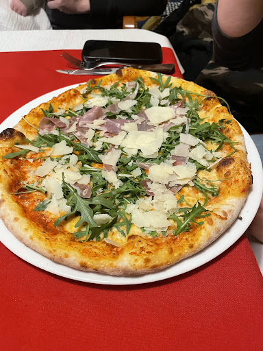 Read moreSehr gute Pizza & schöne überdachte Außenterasse. Dünner, knuspriger Teig & Rand. Dazu wurden zwei Soßen (Knoblauch- & scharfe Soße) gereicht, falls gewünscht. Beide waren sehr lecker & haben die ohnehin schon sehr leckere Pizza noch zusätzlich aufgewertet. Essen kam schnell und der Service war gut! Mit Vorspeise (Bruschetta) und Getränk preislich insgesamt für 20€ absolut top!...