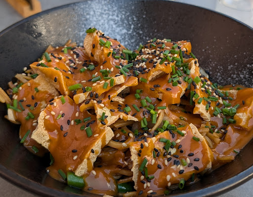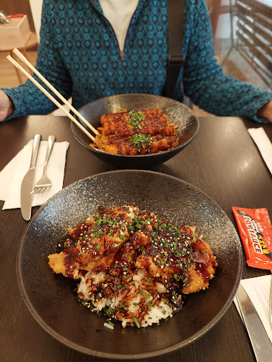 Read moreSchön angerichtet und wirklich lecker! Ein sehr kleiner Laden, der auf den ersten Blick eher für Laufkundschaft ausgerichtet sind. Drinnen befinden sich vier kleine Tische, bei schönem Wetter hat man aber auch die Möglichkeit draußen zu sitzen. Bestellt wird direkt an der Theke - eine kleine, beschränkte Auswahl: man wählt aus ob Reis oder Nudeln, welche Art von Fleisch (oder Tofu) man möchte und welche Soße drüber soll. Es gibt auch ein paar klassische Beilagen wie Gyoza und Frühlingsrollen. Getränke nimmt man sich aus dem Regal/Kühlschrank selbst. Da die Dame hinter der Theke sowohl Bestellungen (vor Ort und telefonisch) als auch Küche gleichzeitig händelt, haben wir ca. 20 min gewartet was voll in Ordnung war. Sie war aber super freundlich und hat uns das Essen gebracht. Das Essen selbst war sehr hübsch aufgemacht und lecker. Die Portion war mittelgroß - für mich hat sie gereicht, aber wenn man eine Person ist, die sehr viel isst, reicht eine Portion vielleicht nicht. Dafür ist der Preis aber auch recht günstig, etwa 10 - 15 € je nach Gericht. Insgesamt fand ich den Besuch sehr angenehm, auch wenn das an der Theke und die Selbstbedienung bei Getränken bestellen für mich ungewohnt war. Die Bedienung war sehr freundlich und geduldig und der Preis war fair. Ich...