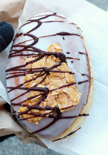 I had a nice milk coffee to drink, and to eat I had a Berliner, nut filling pastry.
