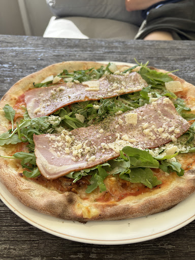 Wir haben uns für eine Pizza entschieden – mit Wildschwein- und Hirschschinken belegt. Mit 20 Euro war der Preis zwar auf den ersten Blick etwas höher, aber geschmacklich war sie absolut überzeugend: knuspriger Boden, hochwertige Zutaten, perfekt abgeschmeckt. Eine echte kulinarische Überraschung! Dazu haben wir einen Limoncello Spritz bestellt – eine wunderbar erfrischende und ausgewogene Mischung, ideal für einen sonnigen Tag.