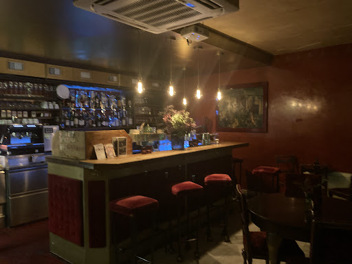 When you enter the bar you feel right at ease with cozy comfortable atmosphere. You feel like entering someone’s living room. The lighting is very relaxing and have a nice vintage decorations and furniture like the red velvet bar stools & chairs, red carpet. The bar has a nice cozy first floor as well, that has vintage tables and chairs, red carpet, painting on the wall, 2 beautiful old chandeliers lights.