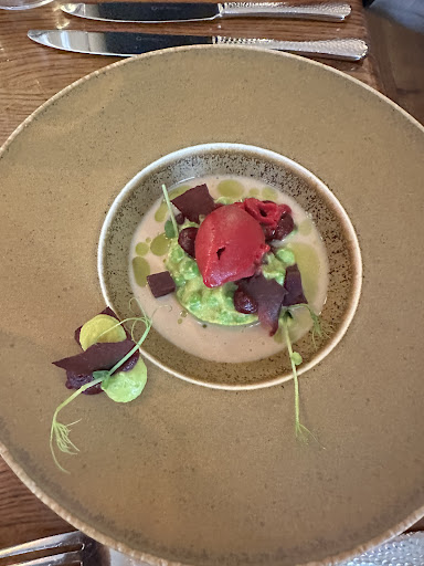 Mein Vater entschied sich für das "BEEF TATAKI" als Vorspeise - japanisches Beef Carpaccio mit Sellerie-Gurke Fond, fermentierter Kohlrabi und Zwiebeln, sowie knusprigen Bonito-Flakes. Diese Kreation war ein Fest für die Sinne. Das zarte Rindfleisch wurde perfekt präsentiert und die Kombination der verschiedenen Aromen sorgte für ein harmonisches Geschmackserlebnis.