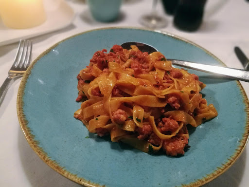 All in all not completely my taste. I took the risotto with veal. The meat tasted a bit like liver, which I guess is due to there also being a liver dish on the menu and the seemingly the same pan being used.