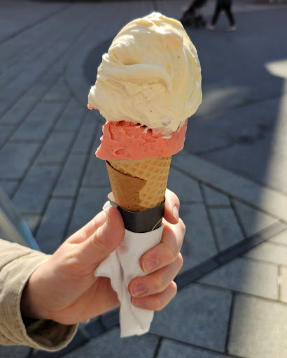 Read moreHabe die Sorte Kastanie probiert und war vom Geschmack und der Cremigkeit sehr angetan, verstehe nicht warum es diese Sorte bei uns in Deutschland nirgends gibt (obwohl Maronencreme und heiße Maroni durchaus bekannt sind). Der Mitnahmepreis von 1,99 € für eine durchschnittlich große Kugel ist verglichen damit was man sonst in Vorarlberg und im Allgäu so bezahlt (selten 1,80 bis zu happigen 2,40) schon okay. Man kann gegenüber ganz nett auf einer großen runden...