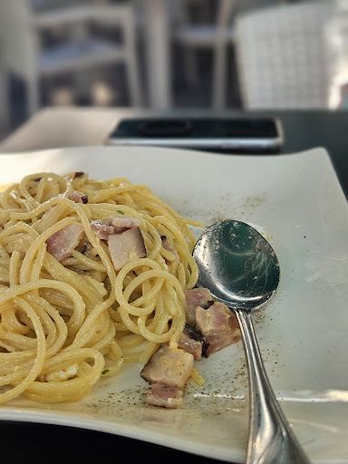 So we just left the place like 10 mins ago, and I have kinda mixed feelings. First of all i have to admit that the food was really filling and the spices were sit at they had to, so overall the food was great, as much as the speed of the service. I ordered a San Marco pasta, and my gf took a carbonara only. It took less than 10 minutes to get served which is quite impressive, very well done. On the other side the waiter who served us was way more intrusive than a waiter should be. As soon as we started to take the first bites of our dish, he came to our table to chat, which was a bit nervecracking. My, and even my gf's mouth was full with pasta and the only thing we wanted was that to enjoy our food without needless chatting with him. A bit embarassing. And at the very end when we asked for the invoice he was judging on me, because i was paying with my girlfriends card, and also said that its a shame that I paid with her card. So first of all he doesn't know anything about the backround of that why i was paying with her card, and even if he would THAT IS NOT OF HIS BUSINESS AT ALL!!! I feel deeply dissapointed and humiliated...