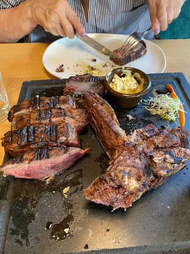 Booking a table was a breeze - just a quick Google search and a simple click for same-day reservations! Upon arrival, we discovered the restaurant had two distinct sections: a vibrant lounge area for drinks and cocktails, and the inviting main dining room. The staff was incredibly kind and served us a delicious red wine that perfectly complemented the outstanding steak we ordered. It's safe to say this establishment serves the best steak in the entire region! The meat was fresh, expertly cooked - as if it came straight from the chef's recipe book. We savored a 400g Fillet and a 200g fillet steak, both of which were divine. The sauces were flavorful, and the menu was impressively well-designed and easy to navigate, making our selection a breeze. We truly appreciated the user-friendly layout and detailed descriptions. Thank you for the warm hospitality - we can't wait to return for another exceptional dining experience! Bravo on a job well done!