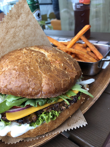 Excellent all around! Great food, great service and no long waiting time! We are not vegan but the food looked good and flavorful, so we thought we would give it a try. We ordered the Mongolei burger, Linsen burger, kinder Mais burger with pommes and the mongolei salat. All of the burgers were flavorful. The Linsen burger was nice and spicy, so we ended up ordering a second one! We saw other reviews with sweet potato fries, but they didn't have that this time. They also have homemade drinks inside that you can help yourself to, included in your meal price....
