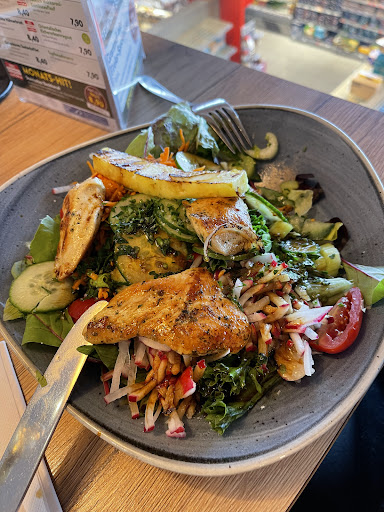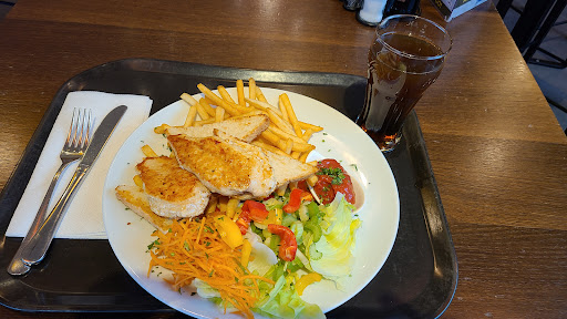 Read moreManche Speisen - wie das abgebildete Steaktoast - sind einfach perfekt. Würde man das so in einem "normalen" Restaurant bekommen, dann würde man dort ca das doppelte Bezahlen und hätte trotzdem nichts zu meckern. Hier nur 8.90 inkl Getränk. An der Selbstbedienungsbar sind die Speisen teilweise prinzipbedingt nicht so gut und man weiß im vorhinen nicht, was ab 16 Uhr günstiger wird. Zum Beispiel die Schnitzel/Cordon Bleu haben einen fischigen Geschmack und sind öldurchtränkt. Zum reduzierten Preis (wenn keine bessere Alternative angeboten wird) aktzeptabel, den vollen Preis würde ich jedoch nicht bezahlen. Warum es so selten die richtig gute (und auch gut an der Selbstbedienungsbar lagerfähige) Currywurst so selten gibt, bleibt...