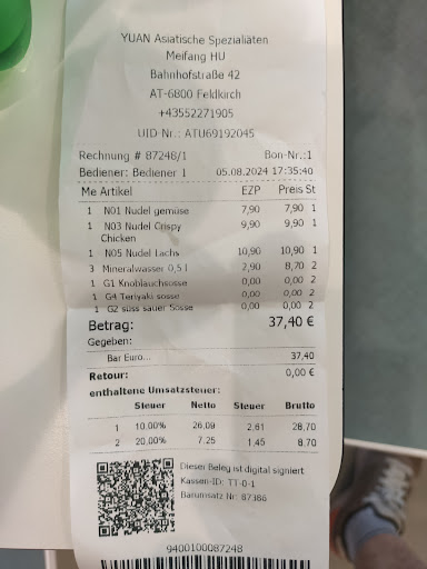 Read moreDer Hunger hat mich bereits vormittags zu Yuan getrieben, es wirkte alles sehr sauber und ordentlich! Ich wurde sehr freundlich gegrüsst, die Dame hat mir noch gesagt dass sie mir gerne ein kaltes Getränk geben kann(habe eins aus der vorderen Vitrine genommen da mir persönlich die gekühlten Getränke oft zu kalt sind), ich erkundigte mich ob ich schon was bestellen dürfte- es war kurz vor halb 11 und die Küche startet ab halb 11- was mit einem "ja gerne" bestätigt wurde. Habe Thai Curry mit Huhn und Reis bestellt, die Portion war wirklich ordentlich und es war richtig lecker! Fürs Ambiente kann das Restaurant nix, ist halt im Bahnhofsgebäude, die Sitzplätze und Tische waren vormittags alle sauber und es treibt sich das übliche Klientel vom Sandler bis zum Geschäftsmann/-frau herum- hier kann man also gut sitzen und speisen und dabei den vorbeiziehenden Leuten zuschauen, oder die Vorbeiziehenden mustern dich teilweise ungeniert😉 Werde definitiv wieder mal zum Essen vorbeischauen, da die Bestellungen der anderen Gäste auch gut aussahen...