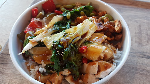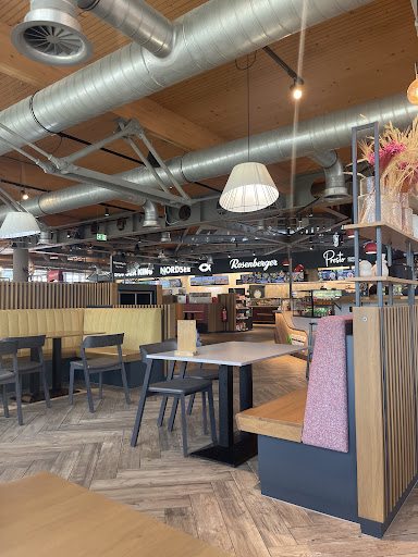 Read moreSorry about the reviews here, I was just probably luckier at 19:30 on a Monday... Was clean enough, some guests only sitting around, quiet, Toilettes (50c) clean I really enjoyed my dinner Calm, empty place to pause from a trip,, Friendly staf Several warm dishes, pizza... I recommend the rice bowl with four different types of vitamin stuff, one of protein plus sauce (teriyaki is tasty) also vegetarian with tofu... Peppers are super spacy, beware!! :-) Price a bit high though but still enjoyably ok Also fast food E-Cars can charge here...