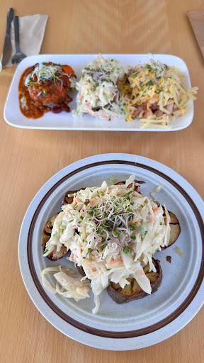 Spuds is a wonderful restaurant serving delicious and creative (slow) fast food. It's essentially different toppings on baked potatoes - the toppings we tried cheese-slaw, and the special of the day with squash, tomato pesto and sage were excellent: interesting and very flavorful. The staff were very friendly, taking time to explain how the toppings were cooked, where they get their ingredients (mostly from local farmers) and making pleasant conversation. They have excellent organic beer from the Schlossbrauerei Stein in Bavaria, and a wonderful guest garden in front of the restaurant to enjoy a potato and beer in the sunshine.