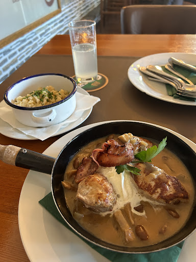 Meine Frau und ich waren Freitag Abend zu Gast. Wir waren, dank der guten Bewertungen sehr gespannt. Das Lokal war gut besucht. Auch ohne eine Reservierung mussten wir nicht lange auf einen Tisch warten. Das Personal ist sehr zuvorkommend und professionell. Trotz des starken Aufkommens, nahmen sie sich Zeit für einen kurzen Plausch. Das Ambiente ist im Landhausstil und lädt zur Gemütlichkeit ein. Das Salatbuffet war in Ordnung. Wartezeit aufs Essen war sehr in Ordnung (ca. 10-15min) Es wird frisch gekocht und sauber serviert. Der lokale Traubensaft, hier im Südburgenland Uhudler genannt, war köstlich. Suppen sind groß und der Fond schmeckt sehr natürlich. Wir hatten Frittaten- bzw. Leberknödelsuppe. Es gibt eine Menge Vorspeisen zB. Beef Tartar. Hauptspeisen sind überschaubar und stellen einen guten Mix dar. Es gibt auch vegetarisches und veganes. Wir hatte die Käsespätzle bzw. Süßkartoffelroulade. Die Portionen sind völlig ausreichend und auch die Desserts zB. Palatschinken) können sich sehen lassen. Preise sind angemessen und man kann auch digital bezahlen. Parken kann man vor dem Lokal auf der Straße. Der zum Lokal gehörende Parkplatz ist schnell voll. Wer in der Nähe ist sollte auf jeden Fall mal...
