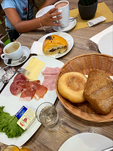 Read moreSchön, sauber und modern eingerichtetes Bäckerei-Cafe, mit sauberen Toiletten. Man kann auch gut draußen sitzen. Der Bereich ist durch Glaswände windgeschützt und hat eine Überdachung mit einer Markise. Die Bedienung ist immer sehr freundlich. Wenn man nicht zu spät dran ist (so wie uns das heute passiert ist), dann gibt es super leckere Kuchen. Vor ein paar Tagen haben wir hier Tiramisu-Schnitten gegessen, die einfach fantastisch geschmeckt haben. Auch das Angebot an Brot und Brötchen ist sehr umfangreich. Parken kann man direkt vor der Tür, wenn gerade etwas frei ist (es gibt daneben noch weitere Geschäfte, weshalb die Parkplätze stark frequentiert sind). Nur das Ausparken ist zuweilen schwierig, weil man quer zur Straße steht und rückwärts in den fließenden Verkehr auf der Hauptstraße...