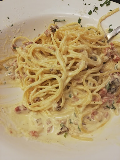 Unfortunately our expectations were not met here. I would recommend you stick to the pizza. We did not order any but they looked good. We had two pasta dishes which truly underwhelmed us. The Linguini alla vongola and the Spagetti carbonara. The Linguini was very dry and tasteless with no sign of a sauce to say. Some shells where broken into small pieces which gave a very crunchy eating experience. The carbonara was more like Spagetti alla scrambled eggs and little sign of a cream sauce. Hence some basics are missing in simple Italian pasta cooking at this restaurant. The view and location is very nice and the restaurant nicely designed which highers the...