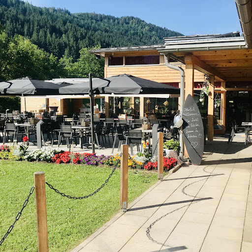 Auch wenn man zuerst - im Bereich des Parkplatzes - den Eindruck hat, dass sich hier lediglich ein Strandbad samt Buffet befindet, wird man, sobald die Anlage betreten wird, mehr als positiv überrascht. Im Inneren des Bades befindet sich ein sympathisches Restaurant, in dem man sich gleich wohl fühlt. Modern ausgestattet, hat man von jedem Platz aus Blick auf den Goggausee. Gekocht wird saisonal und regional - in der Hochsaison täglich bis 2100! Ich kann etwa den Hirschbraten mit gebackenen Eierschwammerl-Nudeln empfehlen. Tages und Wochengerichte gibt es auf der „fliegenden Karte“, mit der euch die Kellnerin besucht - auch ein Erlebnis. Als Nachspeise warten hausgemachte Kuchen. Und Kinder...
