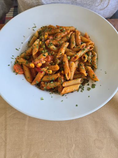 We visited the restaurant at about noon on a Tuesday, it was almost empty. We aren't super picky eaters, so keep that in mind. The waitress was not super friendly but polite. We ordered a soup, a pizza and some pasta. The soup tasted like a can soup with too much salt. We returned it, we were offered a replacement but weren't in the mood. The pasta was okay although the ingredients were most likely frozen. The pizza was okay when it came to taste but the structure was too mushy. I had some debris in the beer and the foam had some weird spot with off colour. The place seems neglected and not really inviting. It could use some cleaning. To their credit we didn't have to pay...