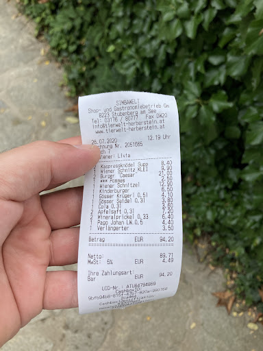 Read moreGeschmack des Essens ist halbwegs in Ordnung. Jedoch sind die Portionen tlw. recht mickrig (Couscous mit Gemüse - da steht man noch hungrig auf), Preise hoch und stimmen tlw. auch nicht mit der Karte überein (z.B. Glas Leitunswasser statt 1€ 1,30 verrechnet = 30% zuviel). Mineralwasser 0,33l in der Flasche €3,20 Bier 0,5l €4,20 - passt da das Verhältnis? Veggie Burger ohne etwas €13,20. Sollten wir Herberstein wieder besuchen, essen wir außerhalb des Parks. Personal war gefordert...