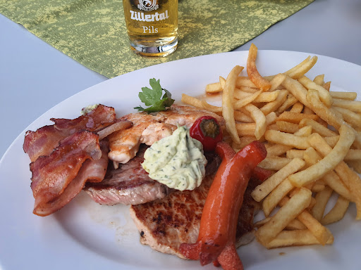 The food and service were generally good, except for an incident when the bill came. I went with a friend who speaks German, whereas I do not. When the waiter handed me the payment terminal, I was the one paying. Upon noticing that I was not going to tip, the waiter rudely grabbed the terminal from me and took it to my friend, who was already near the exit, asking him for a tip in German.