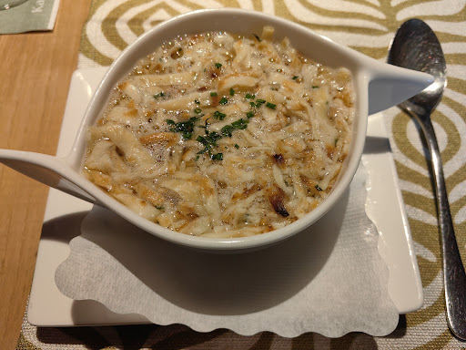 We asked the waitress whereas the fries or salad that she was offering were included with the 35 euro plate that I ordered. She said yes. Then got a 6 euro add on my bill for it. The manager said that the waitresses are like children they cannot do anything, so I should not have asked them anything. But as they are taking the order it only seems normal we ask her. The waitress who has many tattoos and is def far from being a child was insulted badly by the manager and also in my opinion remains the responsibility of the restaurant.