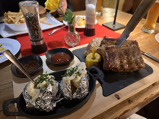 the waitress was rude and not friendly, she showed with all her appearance that we were not welcome, although there were almost 20 of us and for sure our payment made up most of the revenue of this restaurant for that evening. The dishes themselves are not bad, but the cost is quite high - a steak costs 35 euros, giant burgers around 18.
