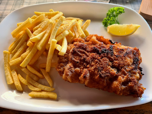 Read moreEin sehr netter überdachter Gastgarten. Das Menü -Cordon bleu-schmeckte gut, mit Beilage Reis oder Pommes frites zur Auswahl und zusätzlich ein Beilagensalat incl., sowie eine Suppe gab es auch vorher. Jedoch lt. Internet stand Suppe oder Kuchen, wobei das nicht zum auswählen ist, sondern da wird tageweise abgewechselt. Ein kleiner Minuspunkt ist, dass Ketchup oder Preiselbeeren nicht im Preis dabei ist, es wird bei Bedarf in kleinen Beuteln dazu gegeben, wobei dann wieder Müll anfällt, was man auch in kleinen Glasschälchen servieren könnte. Ansonsten ein...