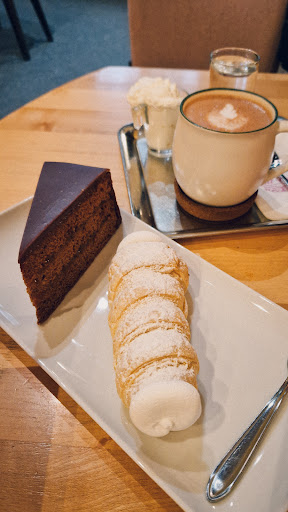 Auf dem Jakobsweg von Innsbruck nach Pfaffenhofen sind wir spontan eingekehrt. Eigentlich wollten wir ja nur einen Kaffee trinken - ein Hinweis in der Karte bzgl. der hausgemachten Mehlspeisenvielfalt und der Blick in die Vitrine haben uns dann aber dazu verleitet, uns ein superleckeres Stück Torte zu gönnen. Die Entscheidung ist aufgrund der Auswahl gar nicht so leicht gefallen 🙃 Die Eisbecher haben ebensfalls sehr gut ausgesehen. Der Kellner war sehr freundlich und hilfsbereit. Sollten wir mal wieder in der Nähe sein, gibt's auf jeden Fall wieder eine...