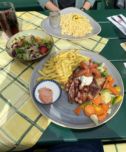 Auf der Durchreise bei Google nach den am besten bewerteten Restaurants geschaut und hier eingekehrt. Wurden lange Zeit nicht bedient, was nervt, wenn man nur kurz was essen mag und gleich weiter reisen. Die Preise sind enorm, fast schon unverschämt. Im Lokal nahe der Theke ist es sehr laut, die Servicekräfte reden super laut und lachen noch lauter, wir konnten uns kaum unterhalten. Spargelasta für 18!eur mit 5 kleinen, harten Spargeln auf dem Teller zudem steht im Menü mit Tomaten, wo waren die??? Siehe Foto! Zudem schmeckte die Soße derart nach Geschmacksverstärkern. Brathändelsalat war ganz okay, wenn auch kein krachen für 15eur, hätte erwartet, dass die Salatsauce wenigstens vom hocker haut, war aber langweilig. Die Panade der Händel, naja... was lecker war, die Knoblauchsuppe. Bezahlen konnten wir dann erst, als wir nach dem Essen aufgestanden und an die Theke gegangen sind. Würden tatsächlich nicht nochmal den Weg auf uns nehmen. Toiletten waren mit Duftstäbchen übersäen, man konnte kaum atmen ohne den Duft der Toilette inne zu haben. Dafür aber sehr sauber.