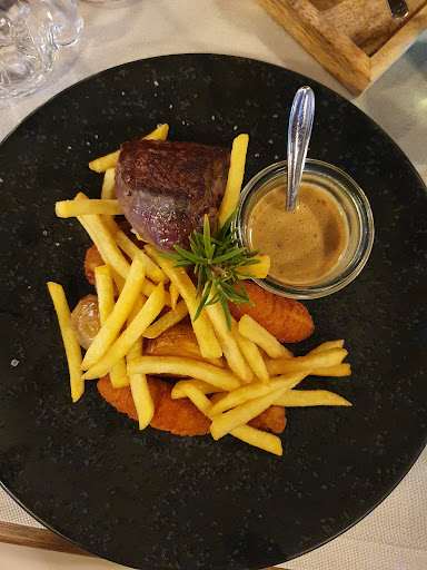 Read moreTischreservierung ok.Parkplatzchaos! Ambiente vorne auf der Terrasse nett aber Lärm von der Strasse und zu laute Musik massiv störend. Personal aufmerksam und sehr freundlich schnell. Unsitte des unaufgeforderten Coperto mag in Italien gehen, halte ich aber hier für 5 Euro pro Person für unangemessen und unverschämt. Mal eben ein paar hundert Euro Gewinn am Abend für fast nichts. Rib eye Steak war zwar wie bestellt innen rare aber an eine Ecke schwarz angekokelt,auf einer Seite fast komplett wie gräulich gekocht. Dazu in der Mitte durchgeschnitten,übereinander gestapelt und mit Soße zugeklatscht. Ausserdem genauso wie das Blumenkolgratin und die Kartoffelmatschtschtaler mit hochtrabendem italienischen Namen fast kalt. Das Gratin waren ca. 2 Esslöffel voll von zusammengekratzen Blumenkohlmatsch. Das gesamte Essen liblos auf einen Teller geklatscht, nicht nett serviert. Für die Gesamtleistung...