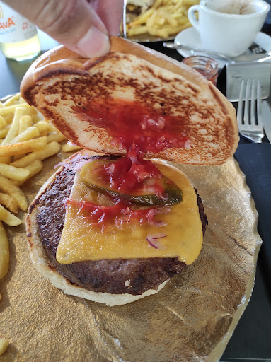 The place is overrated and the food is mediocre. The meat in the burgers was very well done instead of “medium” as written in the menu and they have this policy that if you are seated at the table there is a tax you have to pay of 3.2€ /person and they give you a tiny bread and 4 olives to serve before the actual meal arrives. Even if there are 2 people at the table, there is one bread and the same amount of olives :) For those who rated this place 5 stars, I truly reccomend you try some actual food, not the tasteless meal they serve you here. Also we had some beers and the taste is poor comparing to other beers you can find in Austria. Maybe think twice before...