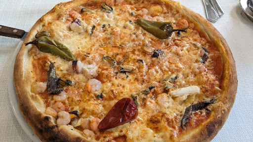 How did I miss this place? A whole year wandering around like some lunchtime nomad, and the perfect spot was basically in my back yard. It’s got that “shop around the corner” energy. Real humble, real local, real friendly. I had the seafood pizza. I enjoyed it! But the seafood might’ve been from a tin. I have no idea if it’s authentic. You ask an Italian, they might say that it’s not. You ask an American, they wonder why it's soggy soggy in the middle. Congratulations, you’re in Europe now. Pizza here is less of a triangle, more of a trust fall. I’ll be back, to this place that has the cozy charm of an American dinner, comfy food with American music blasting in...