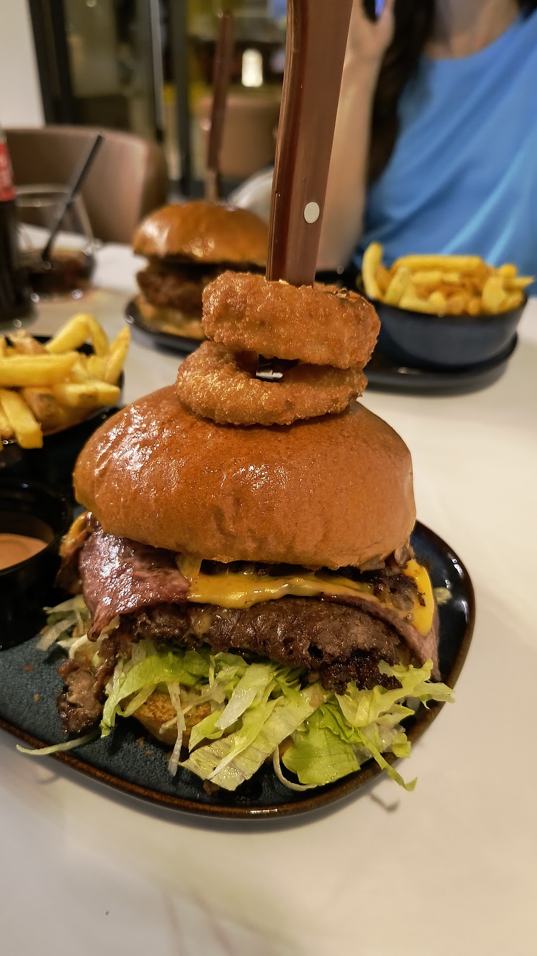 Our burgers came out of the kitchen truly quick, and looked imponent: two towering buns with double smash and a huge fried chicken breast respectively. The burgers were accompanied by a decent portion of fries and sauce, so you don't really need to order those additionally.
