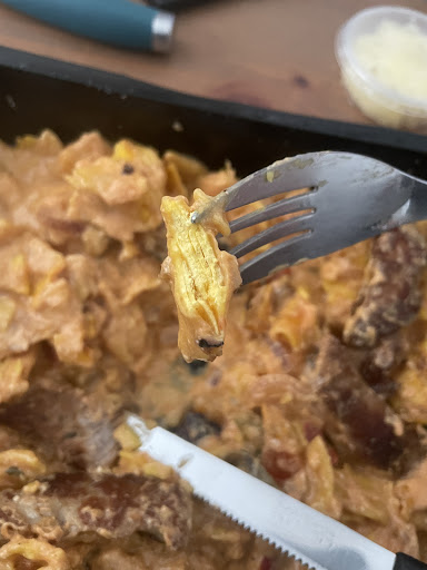 Unfortunately, it wasn’t quite what we expected. We ordered a cheeseburger, a spicy salami pizza, and pasta (casarecce with bell peppers and veal) to see what all the hype was about. It’s not bad food, but it isn’t particularly impressive either. The pasta wasn’t cooked properly and stuck together in large, doughy clumps. What they referred to as “casarecce” was essentially just cut-up pieces of pappardelle. The cream or whatever was used in the sauce had curdled, which shouldn’t happen. The veal was gristly and tough, though the quality itself wasn’t poor. Unfortunately, the flavor fell flat as well.