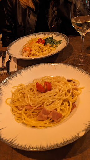 For the main course I had spaghetti carbonara and I snagged some of the tagliatelle scampi gamberetti from my s/o. Both were really good. The cured pork in the spaghetti had an immensely delicious flavor, the size was just perfect, and the tagliatelle had plenty of shrimp and prawn (which is often not a given). The Neapolitan pizza that a friend of ours had was also very good. Had we not had so many appetizers, I would have opted for a tiramisu for dessert.