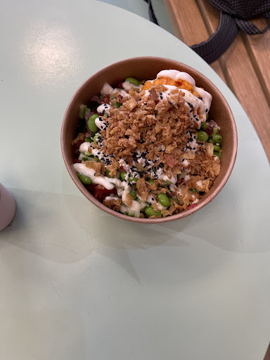 I am astonished that this place has so many good reviews with the bad poke they have. The menu is only in German so if you are a tourist you need to try and figure out or translate the menu on the wall to understand what they offer. The staff was incredible rude, 3 staff members that don't know what customer to serve and are very arrogant and rude. Food was one of the worst I had and cannot be considered Poke, they don't even know what a poke is. I had baba ganoush and my husband the salmon, both bowls, the rice was overcooked and bland, no rice vinegar marinated as a poke should be, ingredients inside were peanuts which had nothing to do with baba ganoush, the poke looked more like a bad shaorma than poke, the ingredients themselves were so bad left more than half bowl because it was awful beside that the combinations are really bad. Clearly people in Vienna have no idea what a real poke is made of and taste. I was sick after this poke, I reccomend people to eat the poke at landstrasse station which is more edible than this one. They have more chances changing the store in a shaorma store, the Arabic feta was the only good thing...