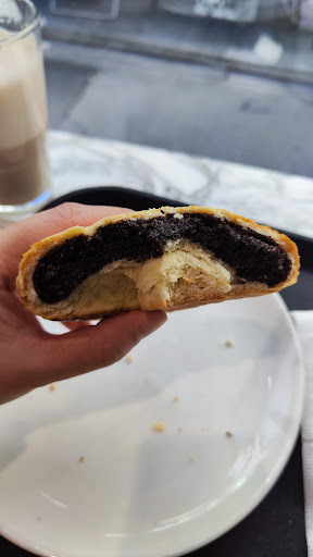 A subpar bakery with items which felt that they were a days old. Unfortunately this review reflects some of the other poorly rated reviews. We ordered three items - the cinnamon bun, a plum jam bun and poppy seed bun. The cinnamon was hard and not particularly flavourful, poppy seed bun was very dense and dough didn't seem fresh and the plum jam bun was overfilled with jam, overpowering the pastry. Perhaps an acquired taste that we weren't used to but quite disapponting given the overall review of this cafe. We also ordered a chai latte which was very sweet and primarily froth (photo attached) as well as a latte which was pretty good. For €17, would suggest visiting other bakeries...