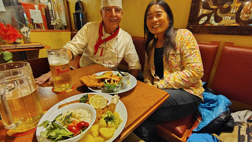 There were many food options, and we were able to try some delicious typical dishes. Everything we ordered was excellent: appetizers, the Viennese schnitzel, salads, beers, and wine.
