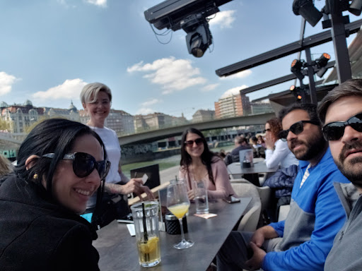 did my first run along the canal today and went by this place. gorgeous sunny blue sky day in vienna, and there are quite a few eatery/lounging places along the east side of the danube canal. but this one looked most put together not to mention when i saw the sign "burgers" i told myself "yup it is our kind of place. and we are coming back here after my run and my husband's bike ride" so we did. lovely lovely spot to spend afternoon hours in in the sun (almost too bright and warm! 🤣🤣) and have some comfort food! we ordered beer and apricot prosecco, cheese burgers and tijuana picante. i was impressed with the presentation when our plates arrived! they were beautiful! i especially appreciated the nice touch such as pseudo newspaper wrap for the burgers and mayo served in a little glass jar! i did not expect a little water front place to be this dressed up! of course the food was excellent! and reasonably priced! as americans, we always tell each other that if there is such thing as "american cuisine" it would be hamburger! few other countries in the world know how to do burgers like we do! so we almost never order burgers when we travel in EU. burgers at this place are good, tasty but different thanks to the cheese and sauce they use! great vienna experience! (i honestly cannot fanthom the complaints about not finding seats, slow service or high price! of course price is totally subjective - it all depends one's budget! lol but all prices are cleanly printed out! you can always read before you decide...