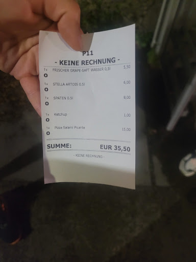 Als es dann an das bezahlen ging und die Frage ob alles zusammen oder einzeln gab es rollende Augen auf den Wunsch: jeder zahlt seins. Anscheinend ist dem Kellner nicht bewusst das er in einem solchen Fall mehr Trinkgeld bekommt als wenn alles gesamt gezahlt wird. Aber vielleicht mĂźssen sie das Trinkgeld auch in eine gemeinsame Kasse zahlen was ja nur fair wäre. Oder die rollenden Augen waren darauf zurĂźckzufĂźhren das er nicht rechnen konnte, denn nach Getränk, Speise & Kaffee verschwand er immer ums Eck - vermutlich um den Taschenrechner zu nutzen. Barzahlung war dann das nächste Problem denn Inkasso hatte er keines. Also wieder ums Eck verschwunden und mit dem Wechselgeld retour. Eine ordnungsgemäĂe Quittung gab es dann auch nicht. Nur die Gesamtrechnung die aber bemalt, bekringelt und gestrichen war und nicht ausgehändigt wurde.
