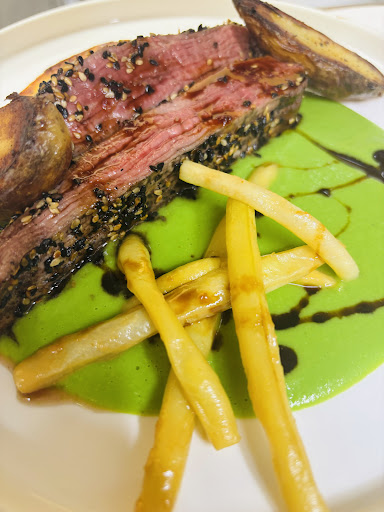 Die selektierte Speisekarte überzeugt mit veganen, vegetarischen und Fleischgerichten in raffinierten Variationen. (Limetten-Prosecco Risotto mit einem optionalen Wolfsbarsch!). Das Melanzani Tartare war schlichtweg ein Wahnsinn - so noch nicht gegessen und das zusätzlich komplett vegan. Ein Muss bei jedem Besuch in Zukunft.