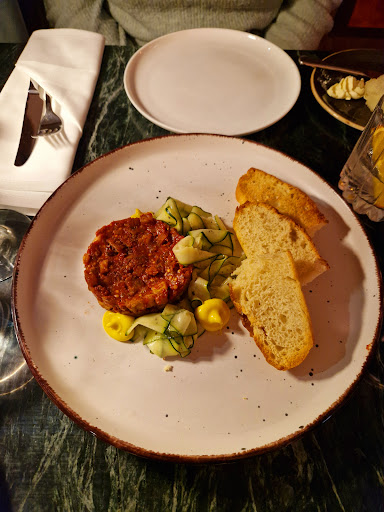 Absolute Katastrophe. Wir hatten nasse Servietten am Tisch, wir wurden nach dem Aperitiv kein einziges Mal nach weiteren Getränkewünschen gefragt, es wurde nicht abserviert, zur Hauptspeise hatten wir kein Besteck am Tisch, ist auch niemandem vom Personal aufgefallen bis wir gefragt haben, außerdem hat eine Hauptspeise gefehlt, dafür wurde sich zu keinem Zeitpunkt entschuldigt. Als wir es endlich geschafft haben jemanden nach Getränken zu fragen, wollte die Person nach einer Bestellung (bei 5 Personen am Tisch) schon wieder abtauchen. Die bestellten Getränke sind dann, abgesehen von einem, das obendrein noch das falsche war, sowieso nie angekommen. Das Essen war komplett überkocht und mit Knoblauch zu Tode gewürzt. Preise sind nicht gerechtfertigt.