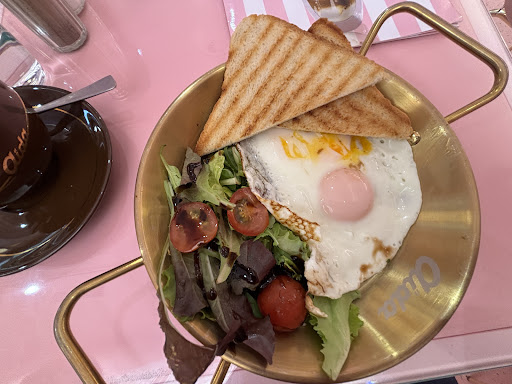 Read moreThis place was actual trash. Not only was the dessert (chocolate cake, honey cake, chocolate sundae) very mediocre and bad, but the service was horrid. We came in wanting to relax after the hot day and ask for water. The water did not come. Desserts came, but we still wanted the water, so we go to the counter to ask for the water again, and the hostess, in a very rude tone, says she's going to bring the water. Like 5 minutes later, she decides to bring the water, and for some reason, she says she's brining 2 waters even though we asked for one? At this point, we drank our remaining water from the water bottle we had. We had been avoiding using the water bottle as we were trying to be respectful with not brining outside drinks into the café. We tell her we don't need the water anymore, and then she YELLS back at us. We have been nothing but kind to her till this point, and just told her again that we do not want the waters anymore. Then she starts going on a temper tantrum, slamming stuff very loudly and acting like she's 5, even though she looked to be like 70 or something. We pay our bill and leave, and notice that quite literally everyone else has water.